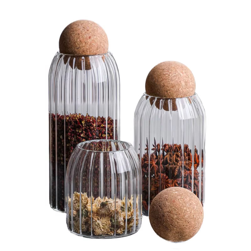 Transparent Borosilicate Glass Food Canisters Cork Lids Jar for Tea Nuts Candy Serving Airtight Kitchen Storage