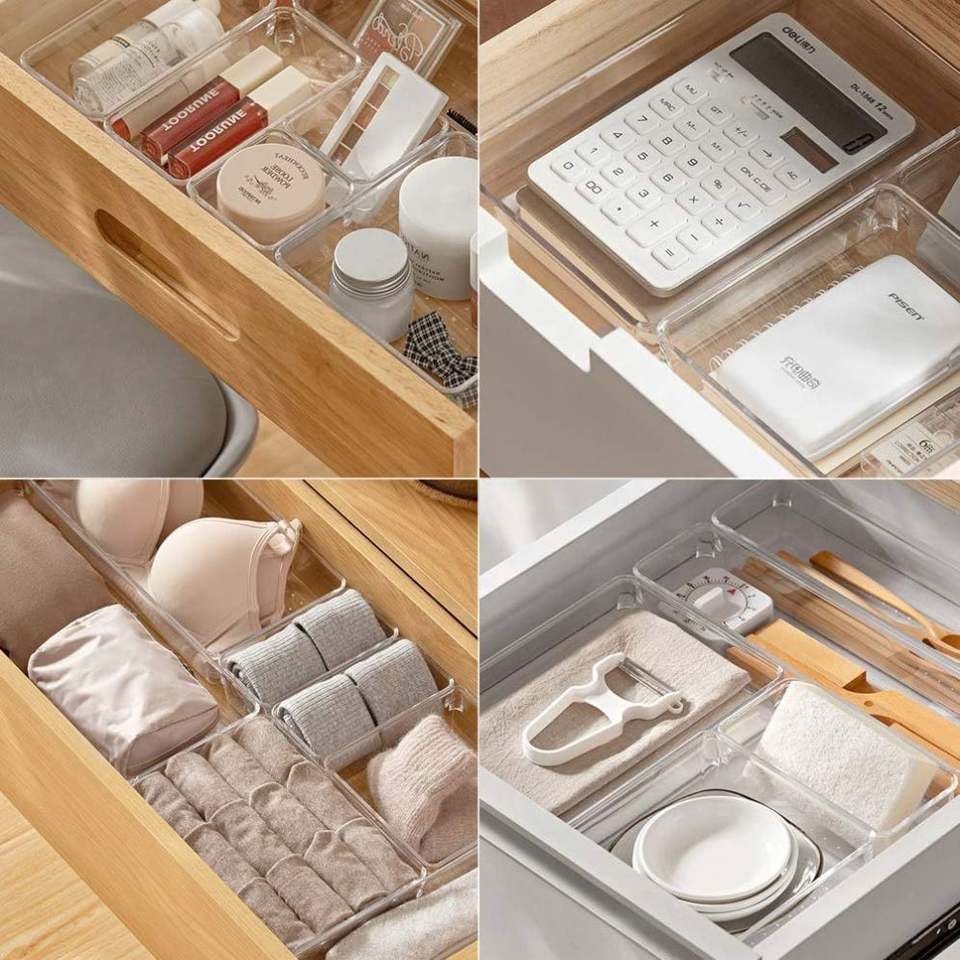 Transparent Desktop Drawer Organizer for Office Supplies, Cosmetics & Clutter Disposal - Multi-section with Clear Dividers