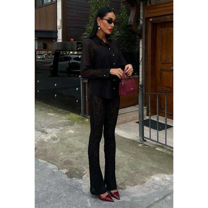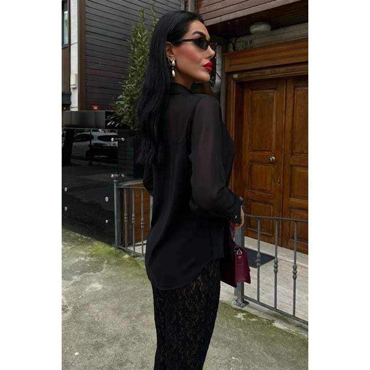Transparent Detail Draped Plus Size Women's Blouses & Shirts 3427