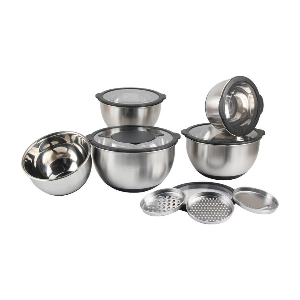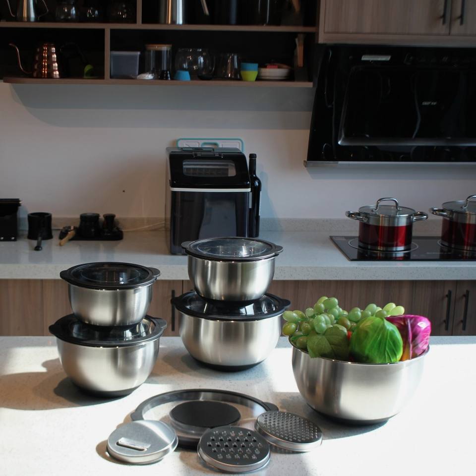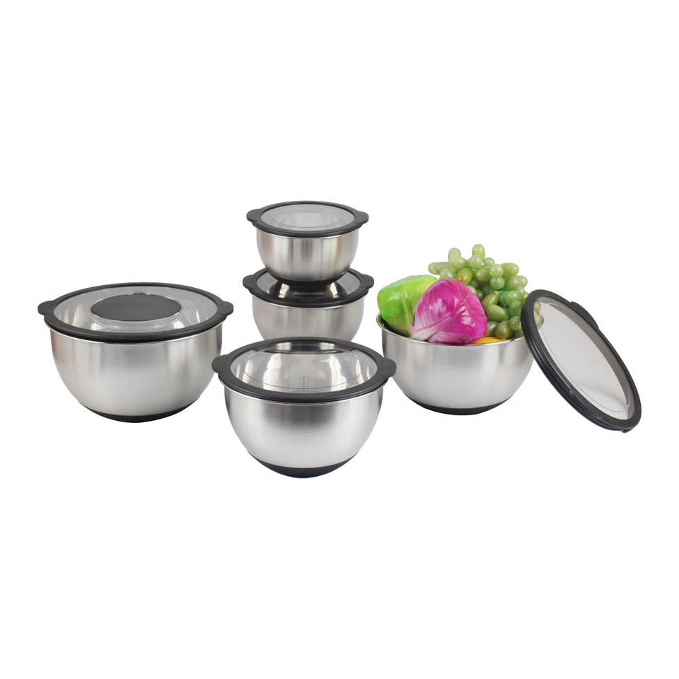 Transparent Eco-Friendly Mixing Bowls with Food-Grade Plastic and Silicone Lids Stainless Steel Partyware for Healthy Use
