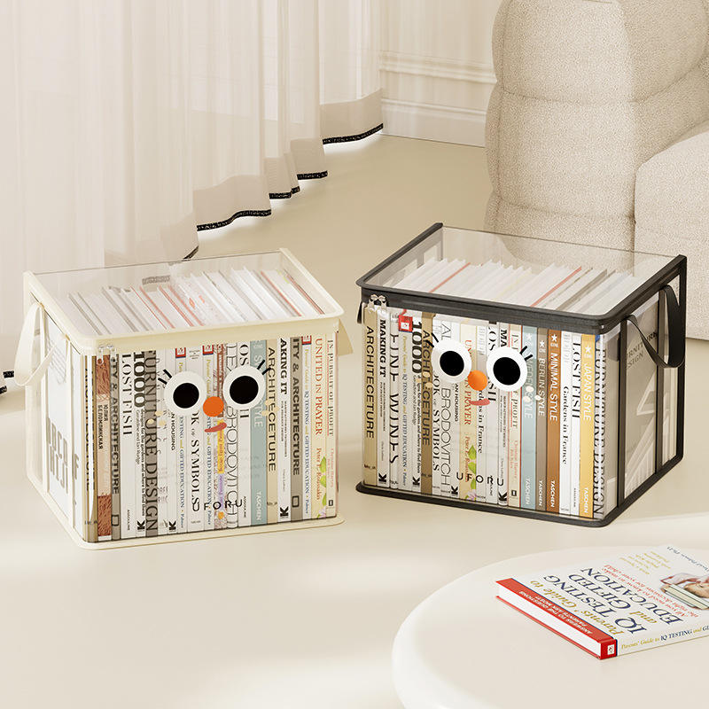 Transparent Foldable Storage Box For Books Rectangle Dustproof Waterproof Office Organizer Living Room Use Mysterious Black