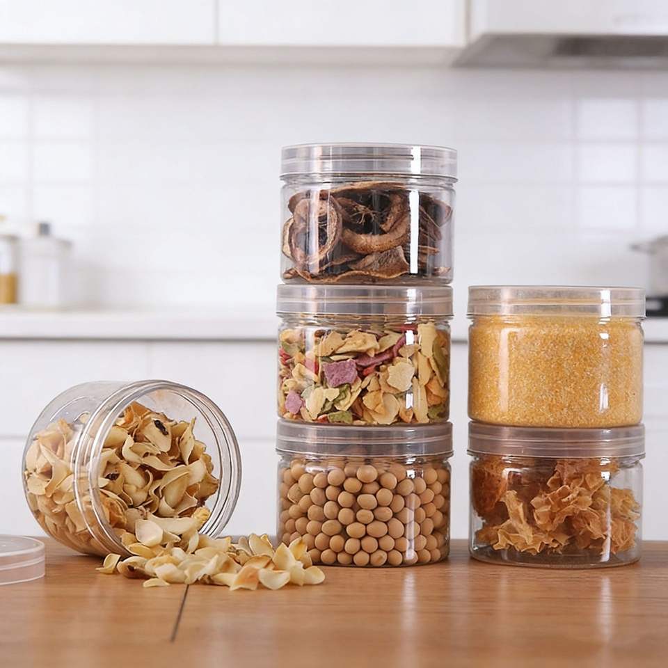 Transparent Food Storage Container Cylinder With Clip On Lid Airtight Seal For Kitchen Grain Cereal Refrigerator Use