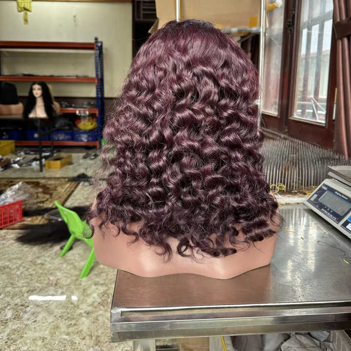 Transparent Lace Front Wigs Burmese Curly Make Burgundy Color Human Hair Raw Vietnamese Hair Extensions Frontal Wig Vendor
