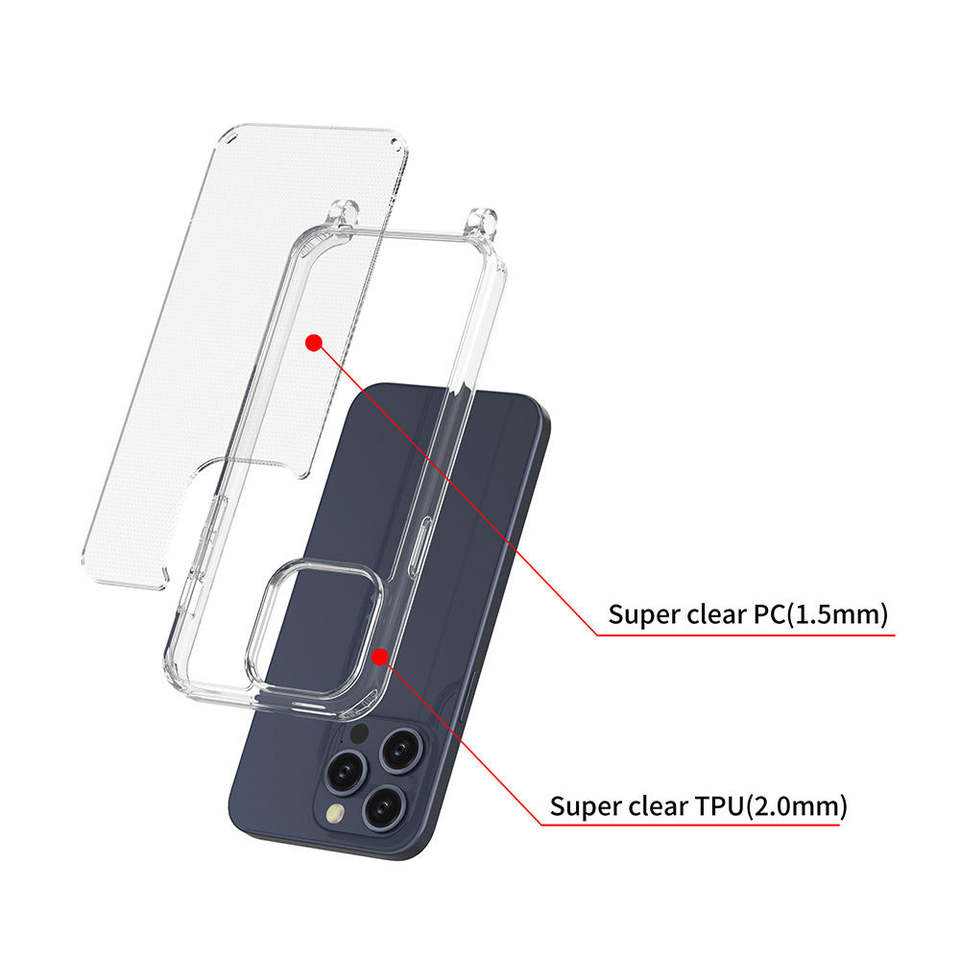 Transparent Lanyard Protective Case for iPhone 13 14 15 & 17 Air Clear Crossbody Hook with Features Hole Straps