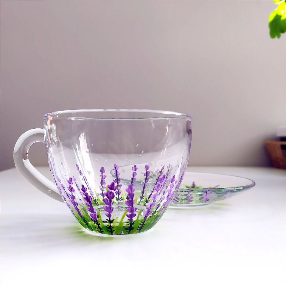 Transparent Modern Style Coffee Cup Vintage Inspired Glassware Set and Saucer, Adult Glass Teacups for Tea Party, Family, Friend