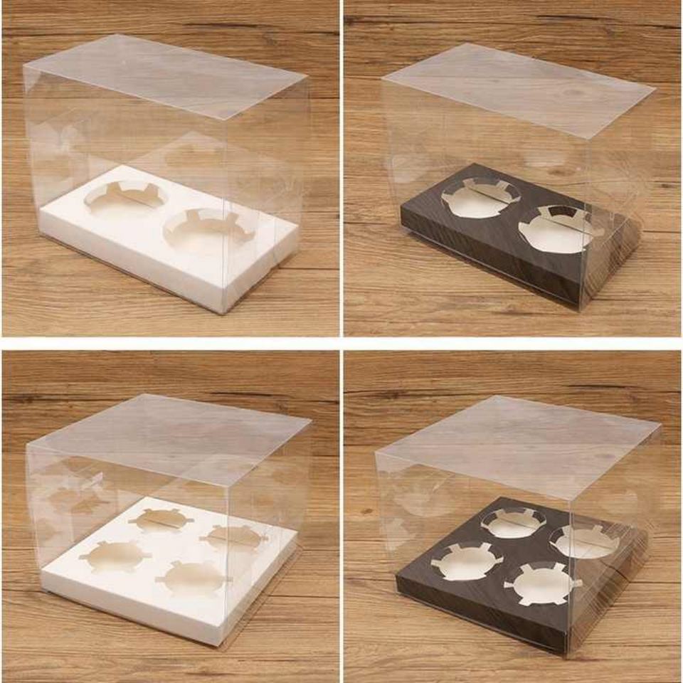 Transparent PET Gift Packaging Box for Christmas Wedding Party-2 4 6 12 Hole Cupcake Folder for Food Use