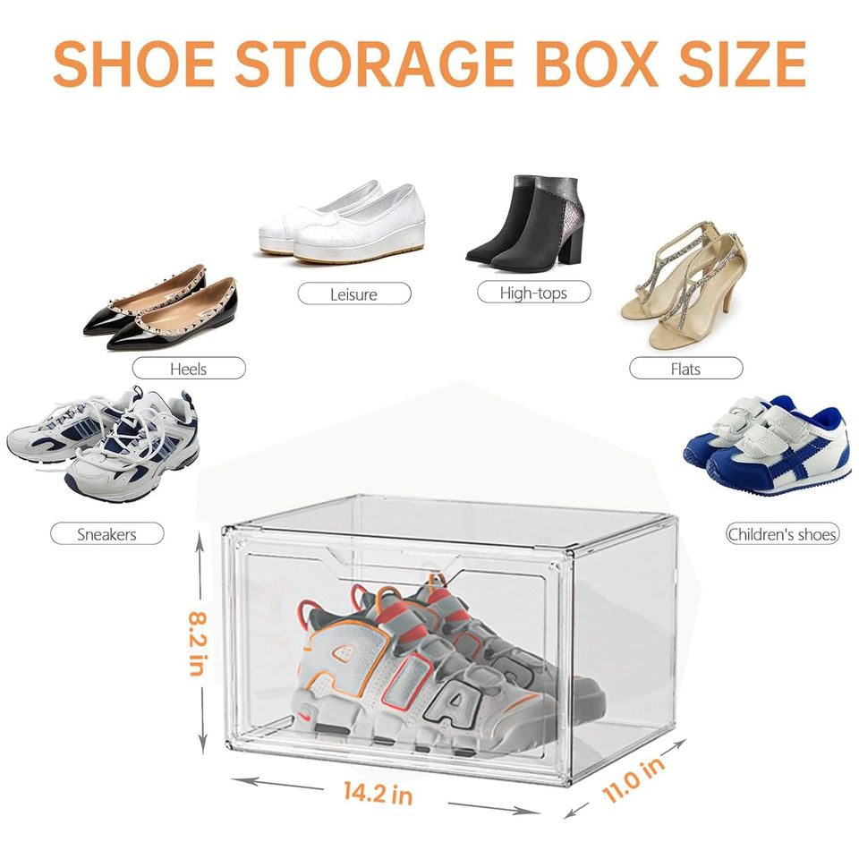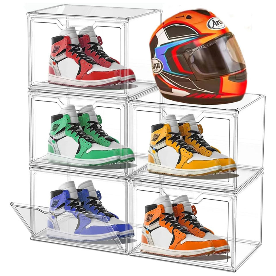 Transparent Plastic Acrylic Shoe Box Stackable Magnetic Door High Quality Sneakers Sshoe Foldable Plastic Box