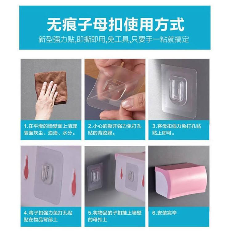 Transparent Plastic Snap Fastener Rectangle Wall Mounted Adhesive Hook Punch Free Polished Finish Hooks Rails