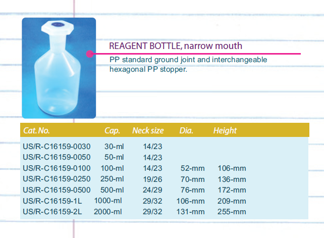 Product name:Transparent Polypropylene Round Narrow Mouth Reagent Bottle