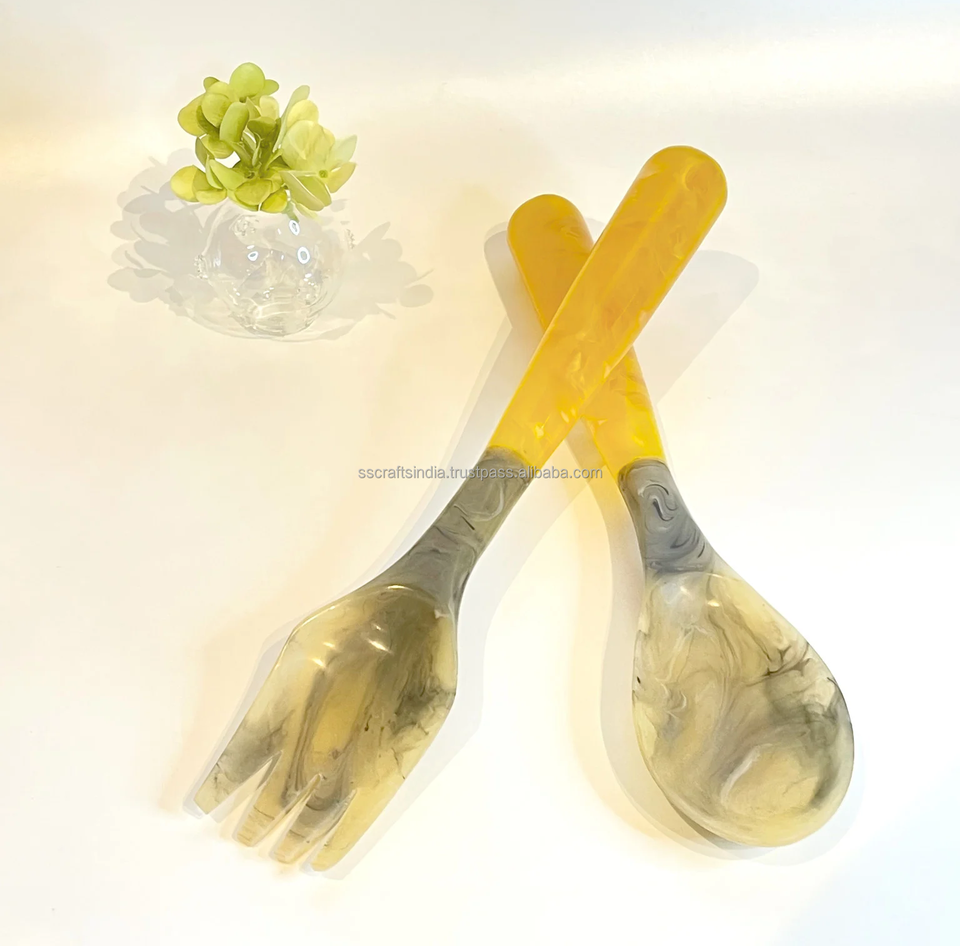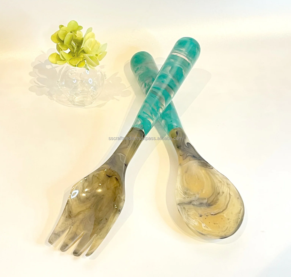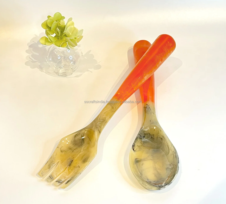 High Quality Transparent Resin Salad Server Spoon & Fork Set with Polished Finish for Home Hotel Use Made in India Kitchenware