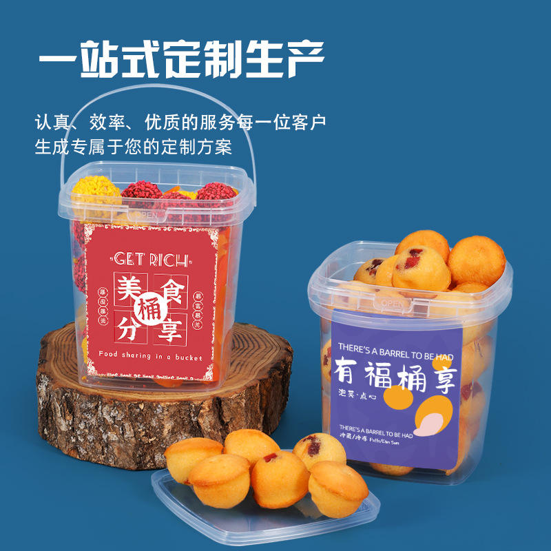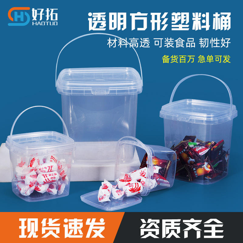 Transparent Square Food Storage Container With Handle Clip-on Lid 0.28-2L For Party Food Packaging