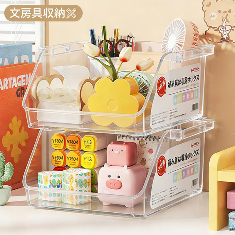 Transparent Stackable Storage Box With Drawers Large Capacity Desk Organizer For Cosmetics Office Supplies