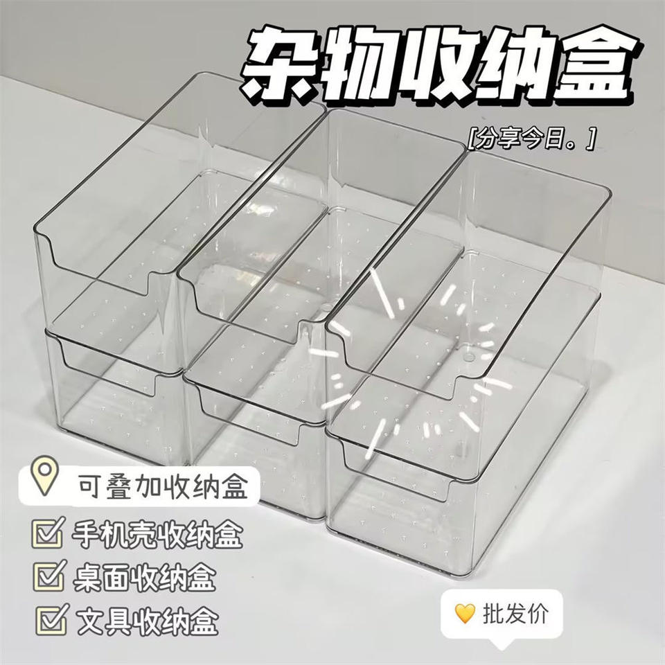 Transparent Storage Box Rectangle Plastic Organizer Desktop Office Small Container For Stationery And Documents
