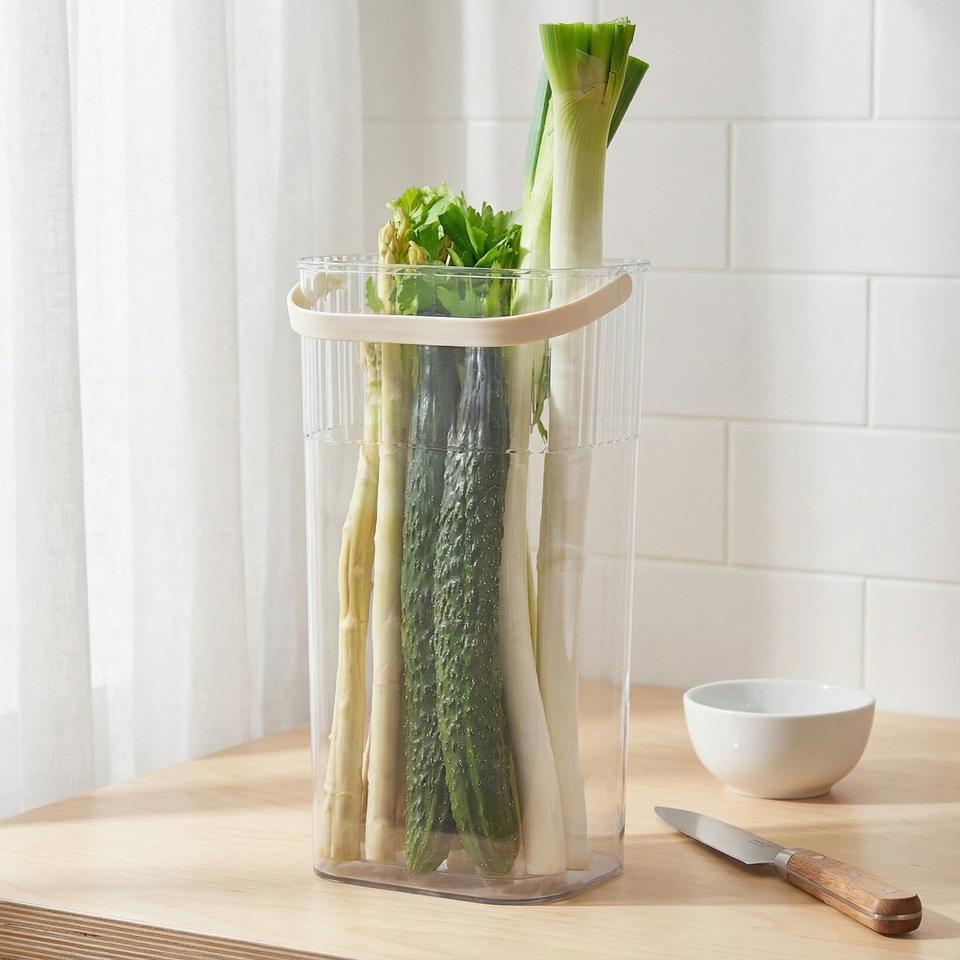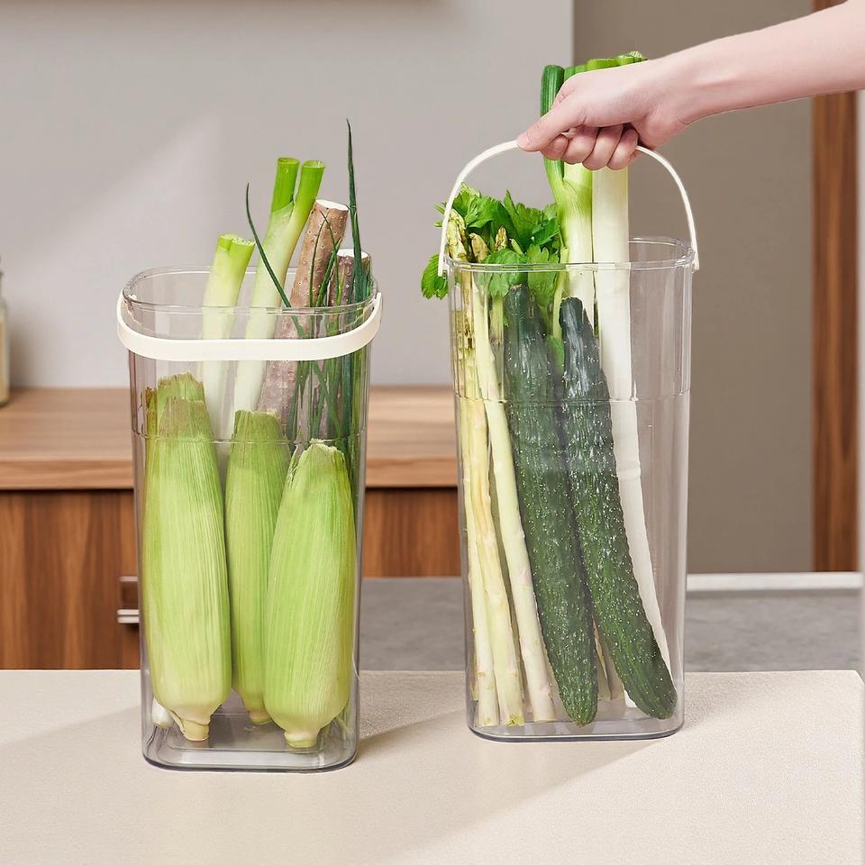 Transparent Storage Bucket With Handle Cylinder Shape For Vegetable And Fruit Kitchen Organizer Large Capacity