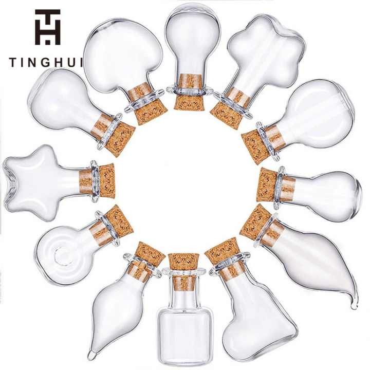 Transparent min Wide Mouth clear Empty Decorative Wishing Message Glass Bottles with Cork Wooden Top