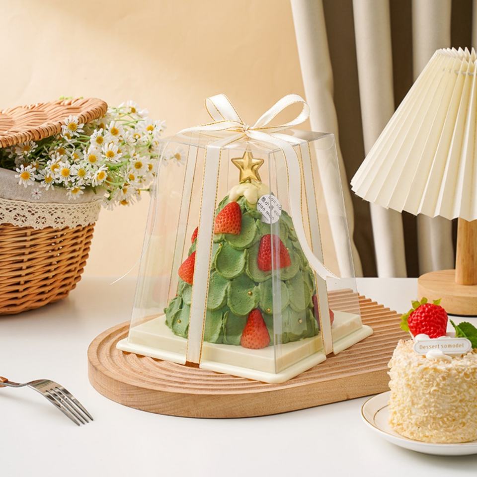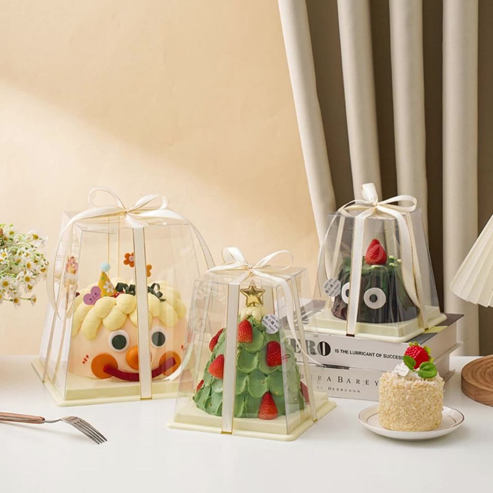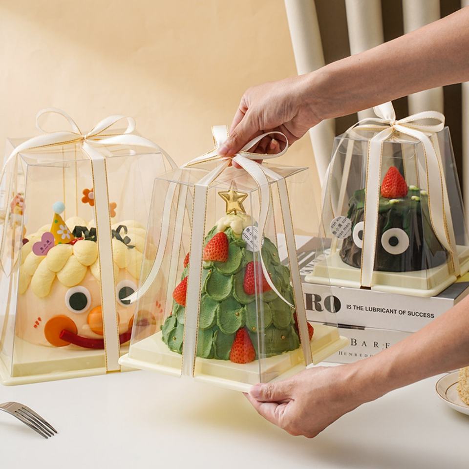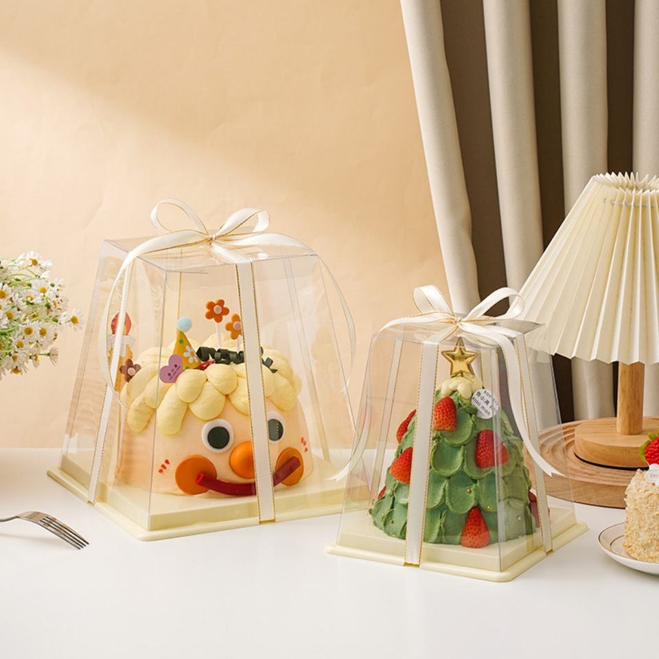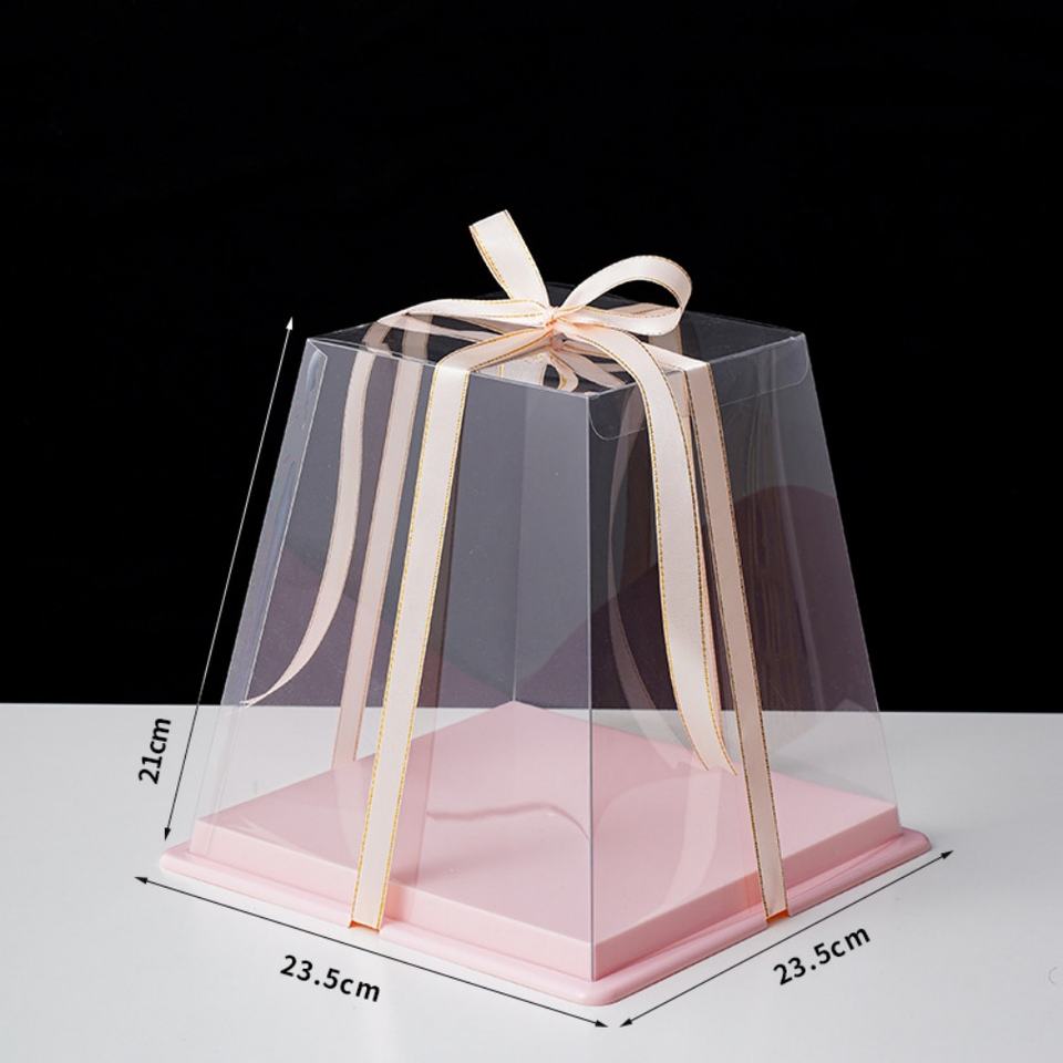 Trapezoidal Pastry Packaging Box Transparent 3 4 5 6 Inch Double Layer Birthday Cake Box