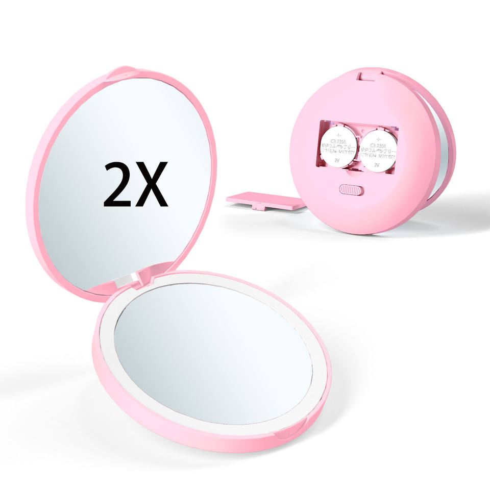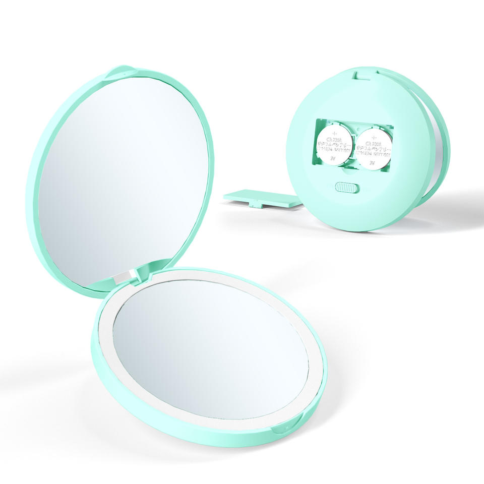 Travel 2X Magnifying Pocket Mirror Folding Cosmetic Handheld Small Compact Mirror Custom Logo Makeup Mirror With Led Light