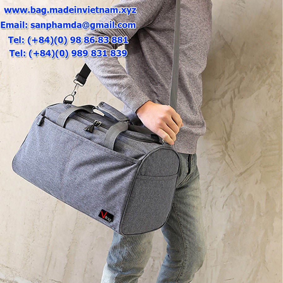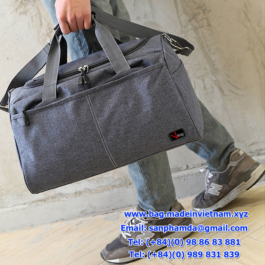 Travel Bags New Top Sustainable Handle Denim Fabric 100% Polyester OEM Duffle Travel Bags ODM Sport Bags Made in Vietnam