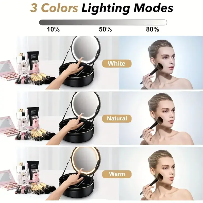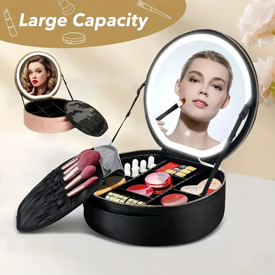 Travel Cosmetic Bag With Adjustable LED Makeup Mirror and Dividers, Valentine's Idea Gift For Her