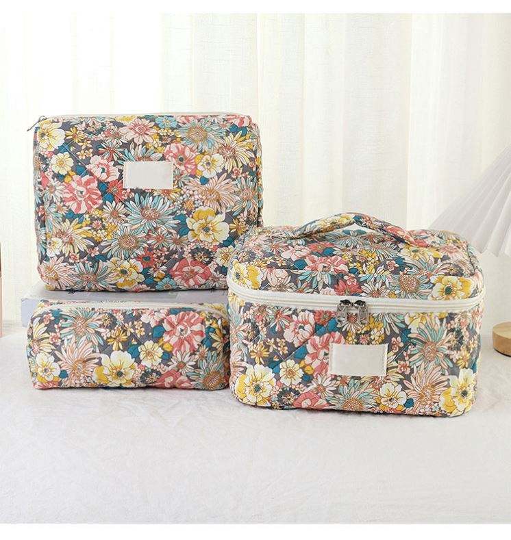 Travel Designer Quilted Makeup Brush Bag Recycled Cute Cosmetic Toiletry Pouch Case for Women