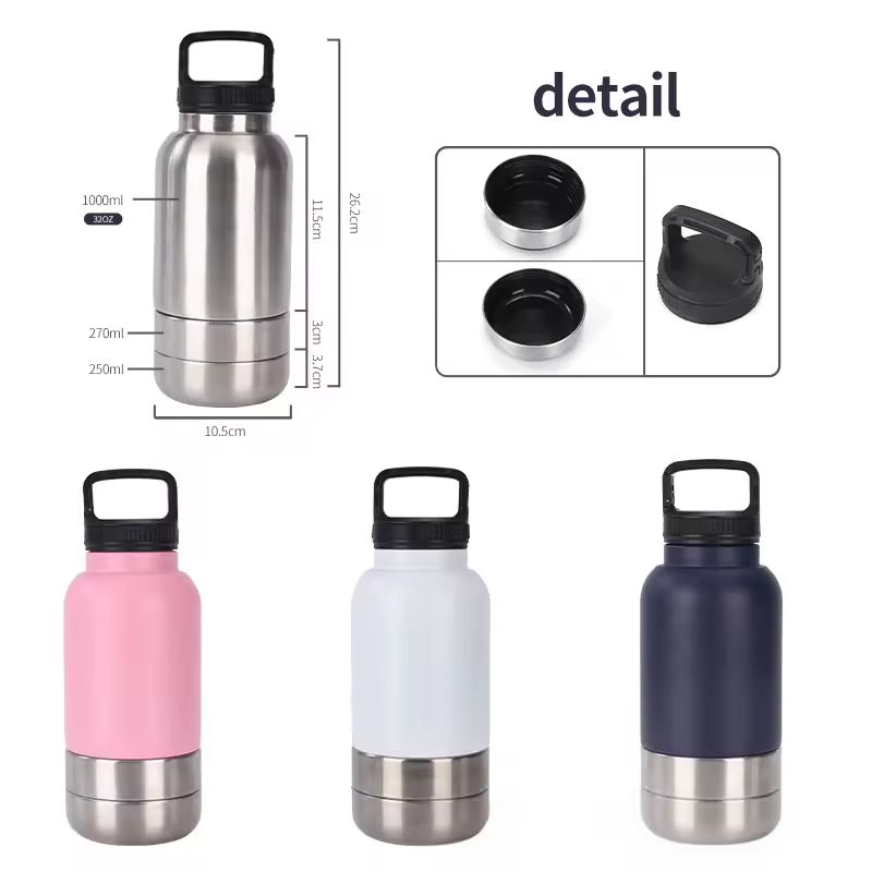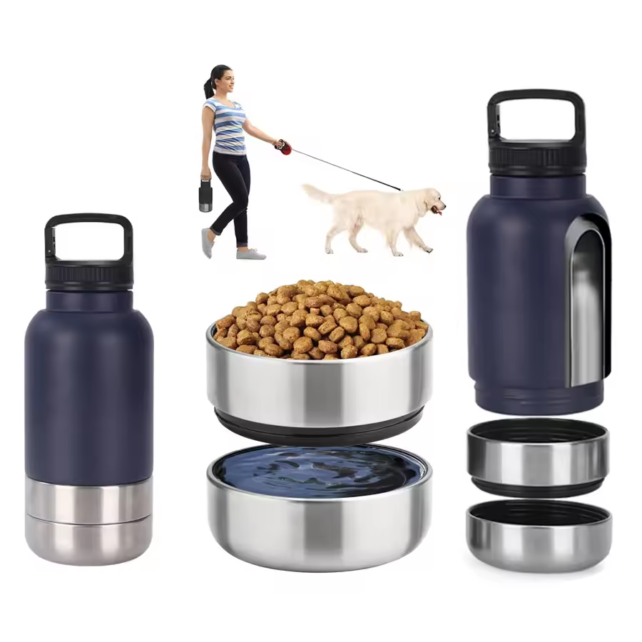 Travel Dog Water Bottle 3 in 1 Single Stainless Steel Vacuum Insulated Portable Pet Water Bottle for Travel
