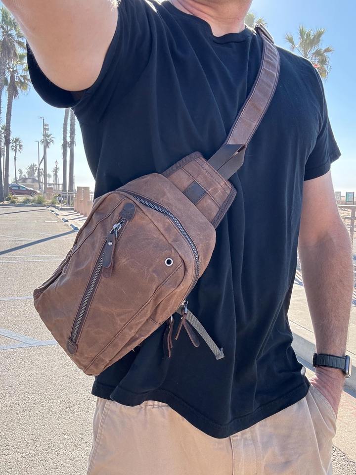 Travel Fashion Leather Canvas Chest Bag Outdoor Sling Crossbody Pack Daily Carry Summer Use High Quality CSB-0024