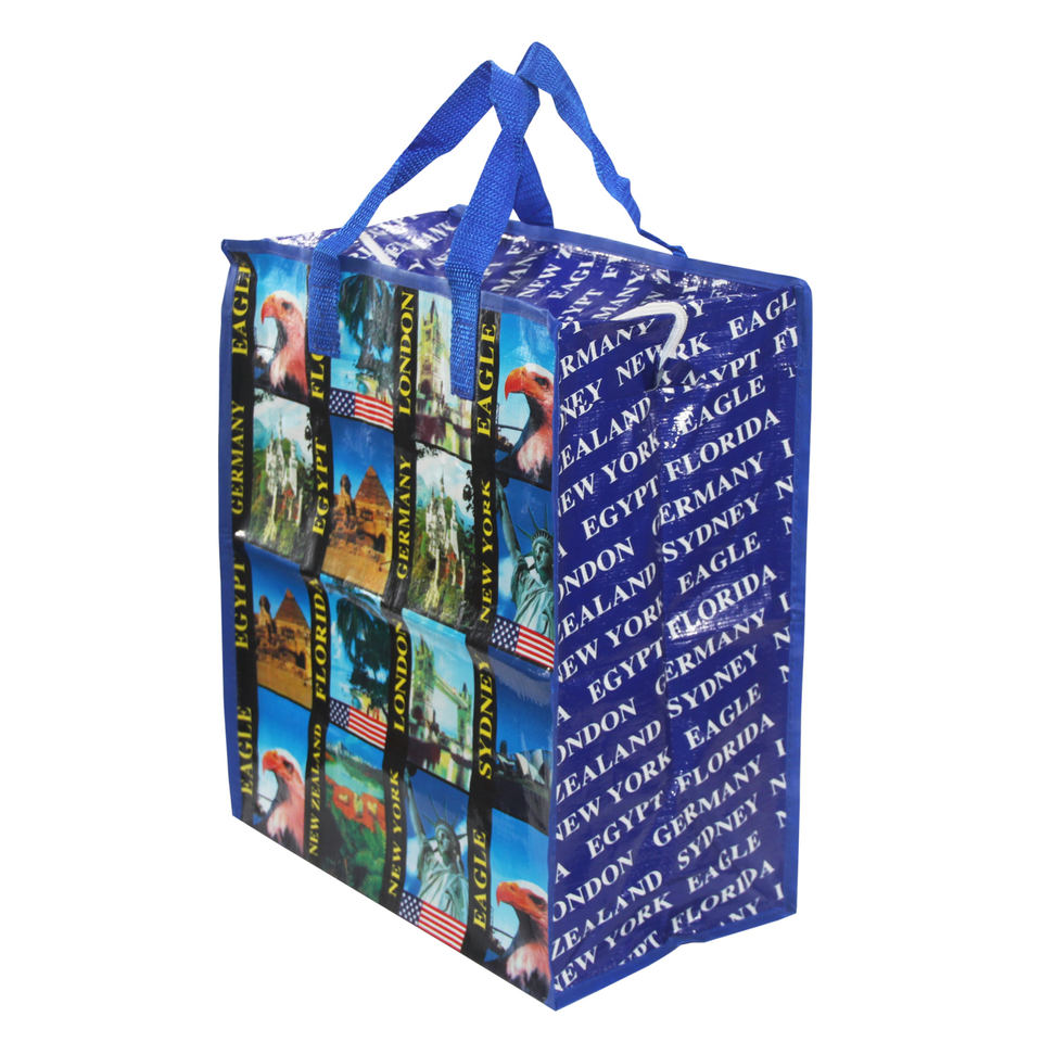 Laminated Waterproof Large PP woven storage bag travel bag with zipper