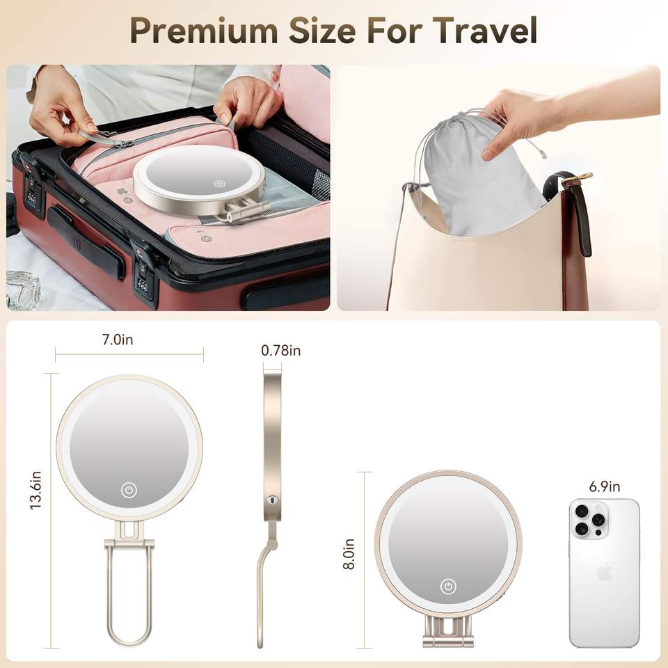 Travel Makeup Mirror with Light, Magnifying Mirror with Light, 73 Light Colors Makeup Mirror, Dimmable Desktop Handheld Pendant
