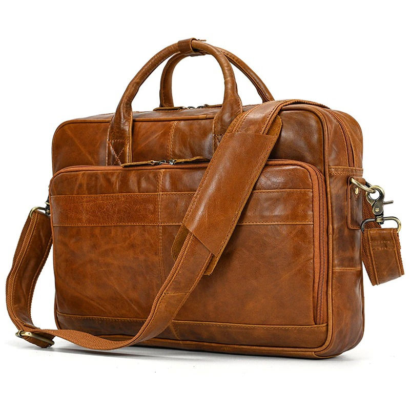 Travel Men Genuine Leather Handbag Male Business Briefcase for 15.6 Inch Laptop Fashion Real Cowhide Leather Shoulder Bag