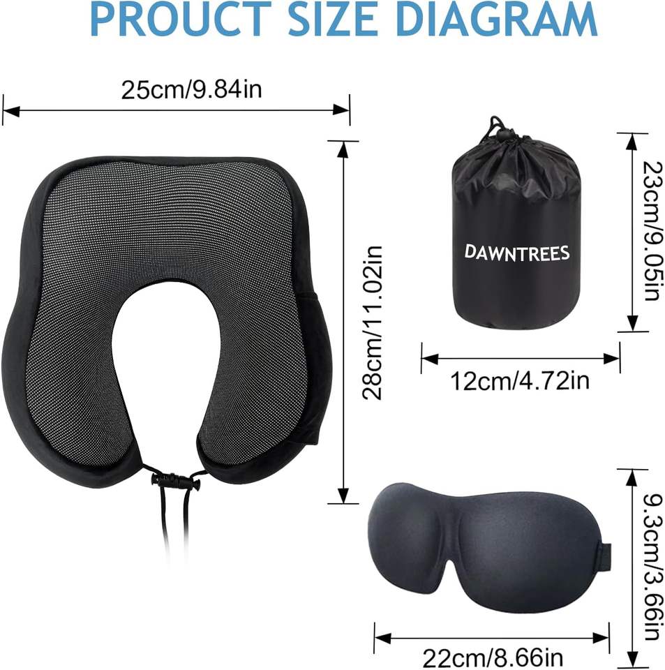 Travel Pillow Neck Support, Pure Memory Foam Neck Pillows for Travel Airplane, Business Trip With Luxury Bag Not Using Latex