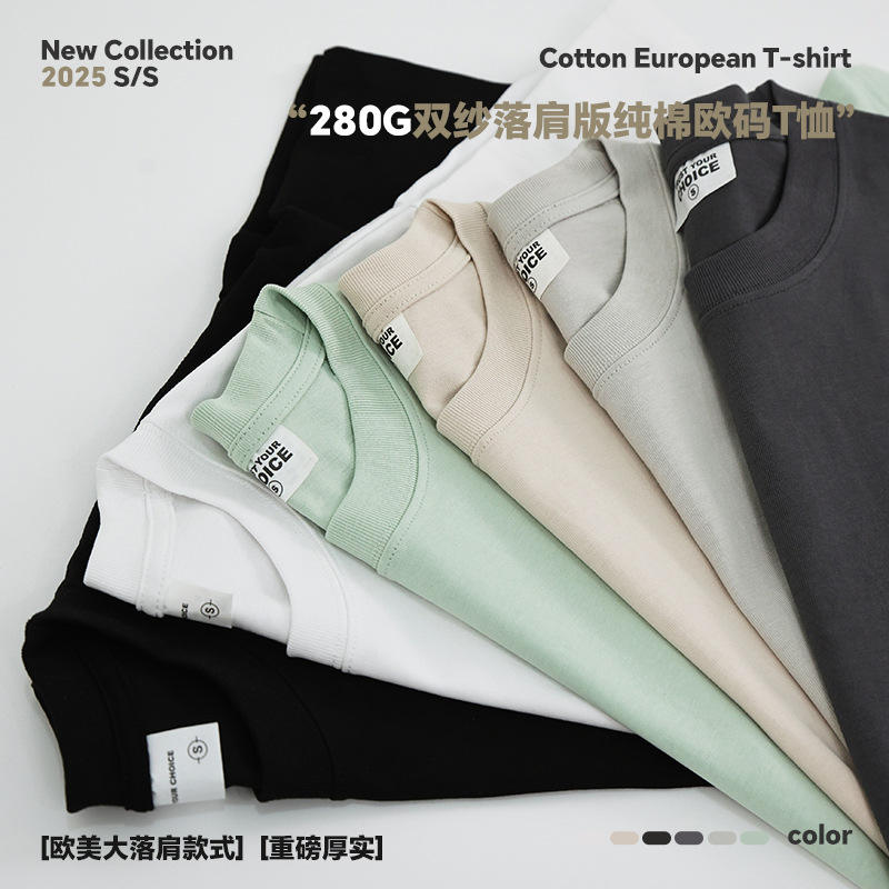 Treat Your Choice Men's Loose Fit Round Neck Short Sleeve Pure Cotton Blank T-Shirt European Size Drop Shoulder Style