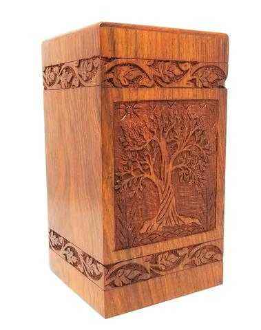 Tree Engraved Antique Memorial Cheap Wooden Casket Box for Adults Human Funeral Ashes Cremation Urns American/European Style
