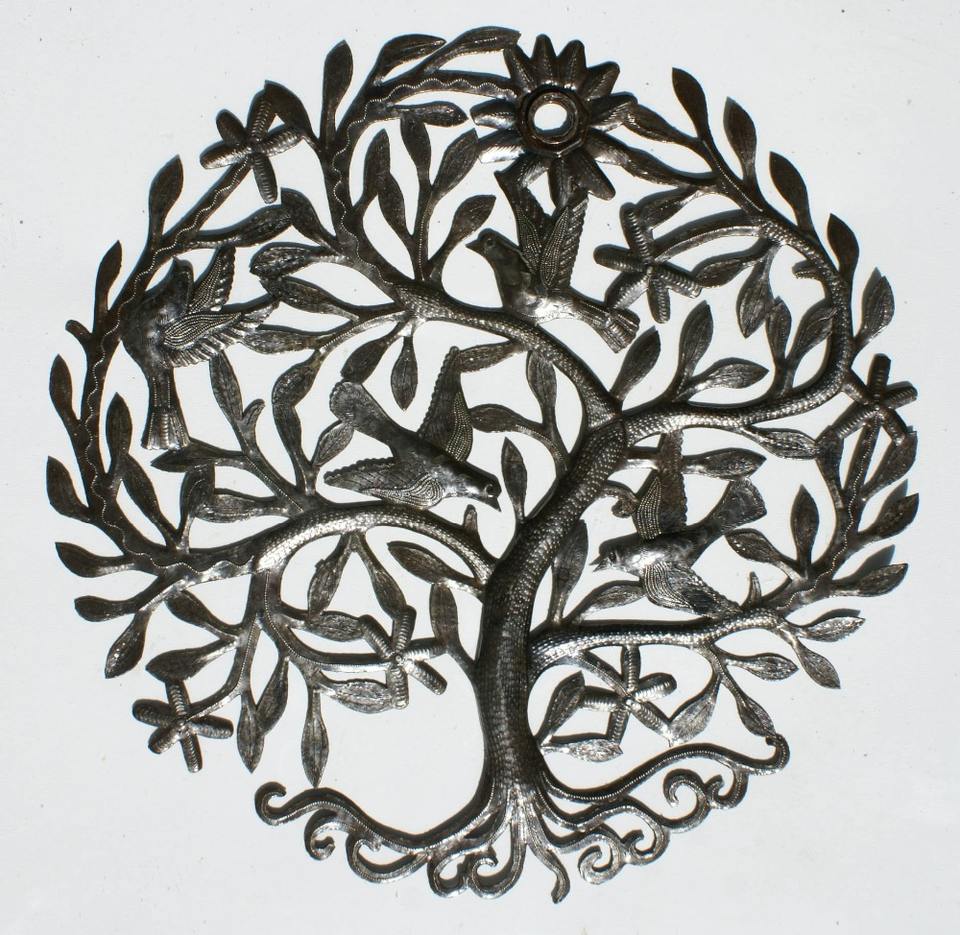 Tree Of Life with Flowers and Birds Outdoor Wall Art Hammered Metal Wall Art 60cm