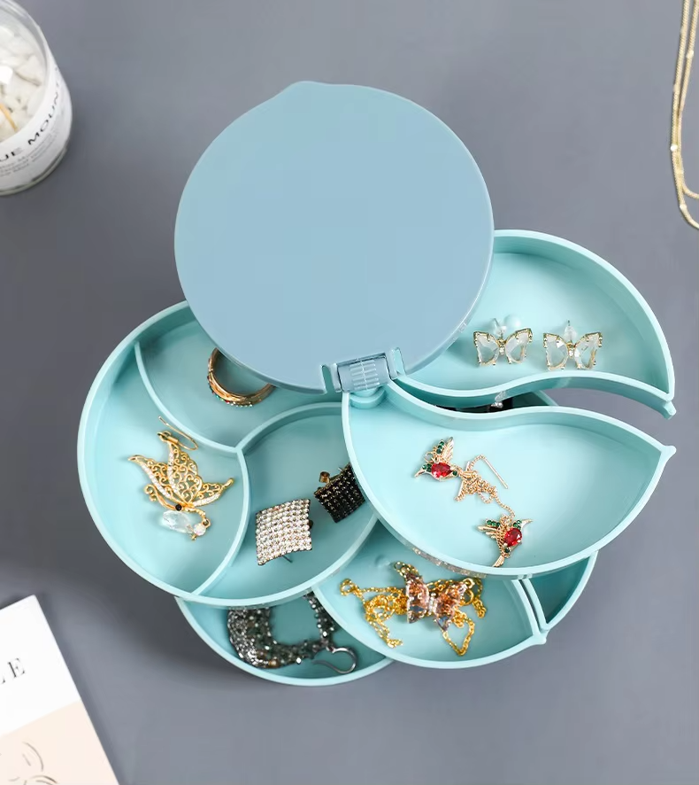 Tree Rotating Expandable Jewelry Box Round Multi-Layer Mirror Earring Ring Organizer
