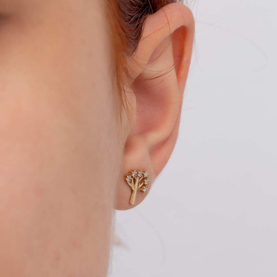 Tree Shapes Round Brilliant Cut Lab Grown Diamond Cluster Stud Earrings 14K Solid Gold Wedding Party Gift for Brides