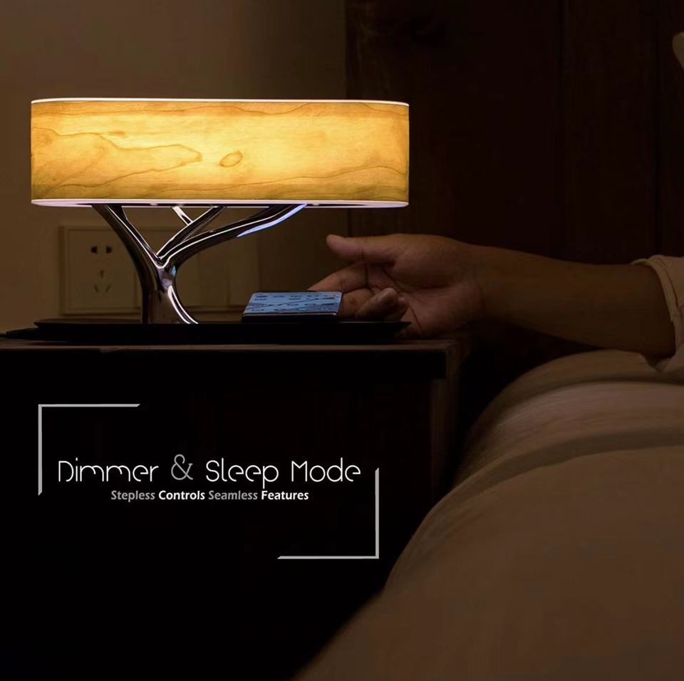 Tree Light Wooden Bedroom Bedside Lamp Touch Led Wireless Charger Table Lamp With Music Speaker