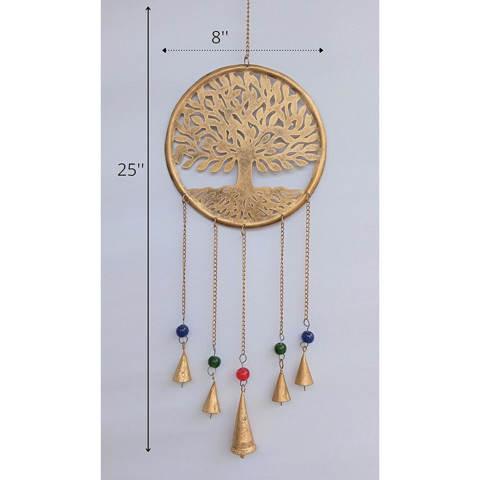 Tree of Life Beaded Wind Chime Wall Hanging Metal Bells Gold Finished Wind Chimes for Home & Garden Decorative