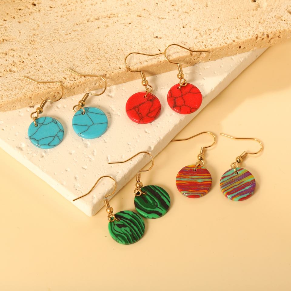 Trend Geometric Colorful Turquoise Pierced Earrings Stainless Steel Jewelry Hook 18K Gold Plated Fashion Drop Earrings for Women