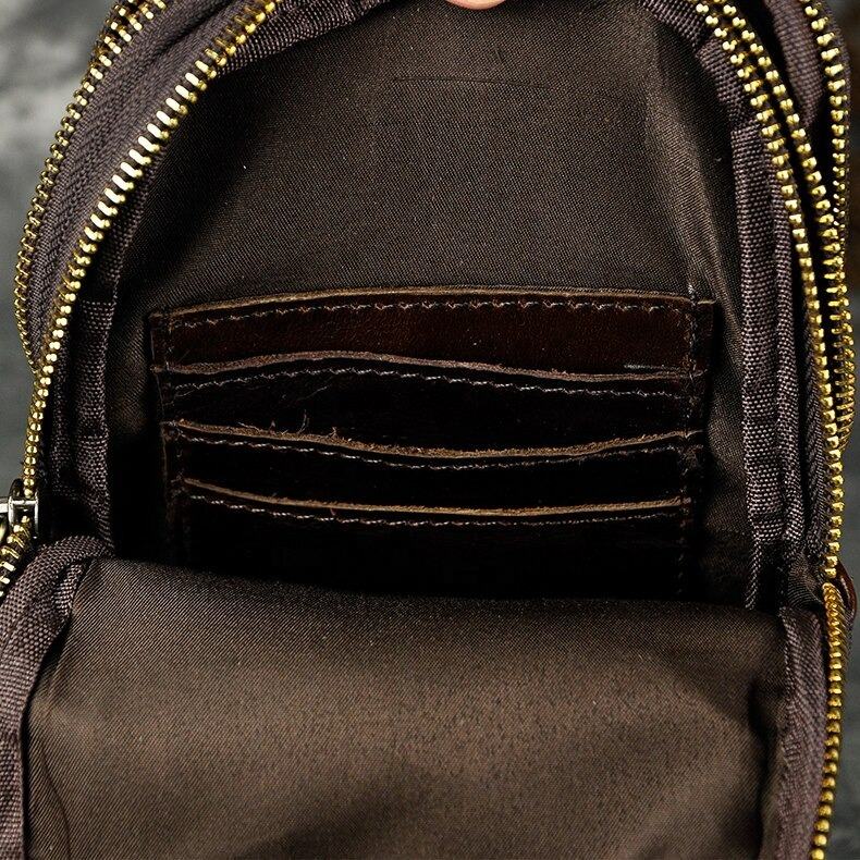 Trend Quality Leather Men Fashion Travel Triangle Sling Chest Design 7" Tablet One Shoulder Strap Bag LKU-0490
