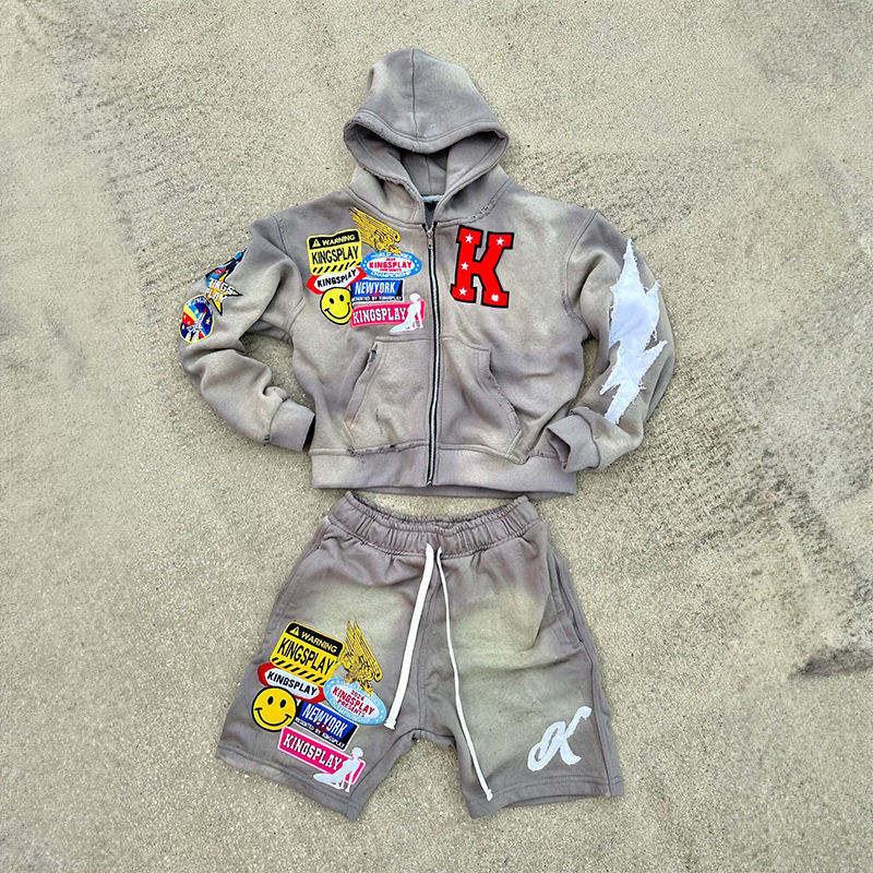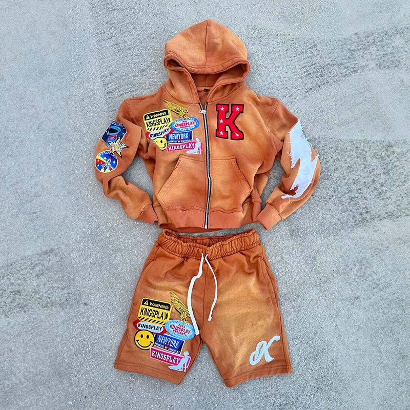 Trend Rhinestone Tracksuit Set Oversized Hoodie Flared Sweatpants Streetwear