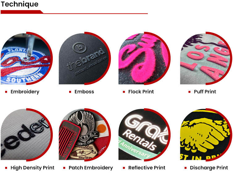 Logo position:Front, back, Left Sleeve, Right Sleeve, lower hem, back neck