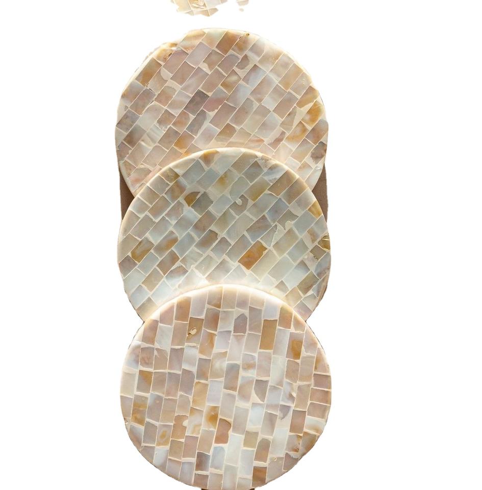 Trend Round mother of pearl cork coasters set handmade mosaic inlay absorbent drink coasters elegant table decor durable cup mat