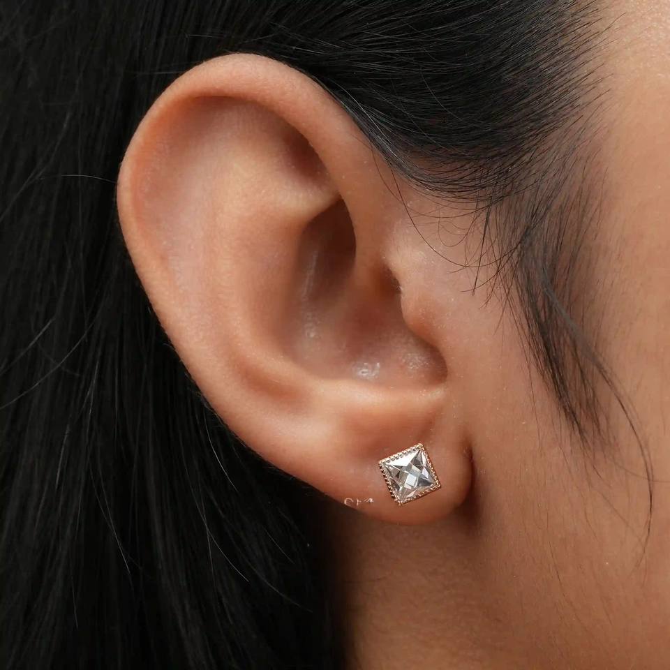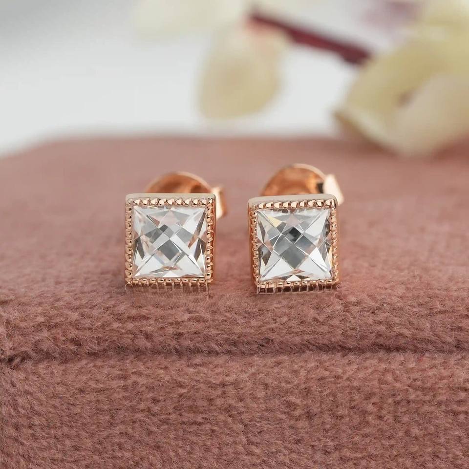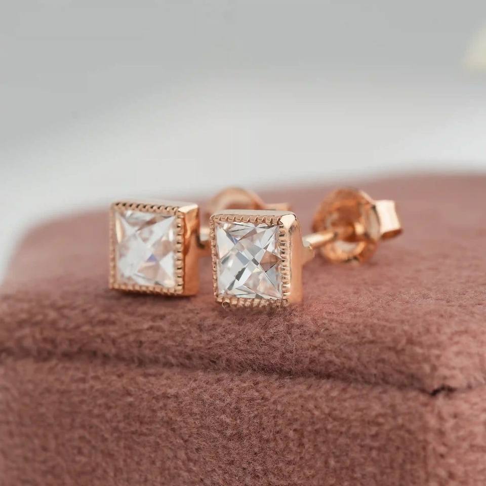 Trending 10k Solid Gold French Cut Lab Grown Diamond Earrings Genuine Diamond Studs Emerald Stud Earrings With Certificate