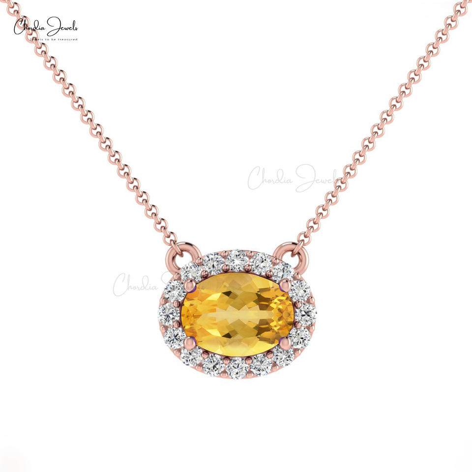Trending 14k Solid Gold Oval Citrine and Round Diamond Halo Gemstone Necklace for Women at Wholesale Price