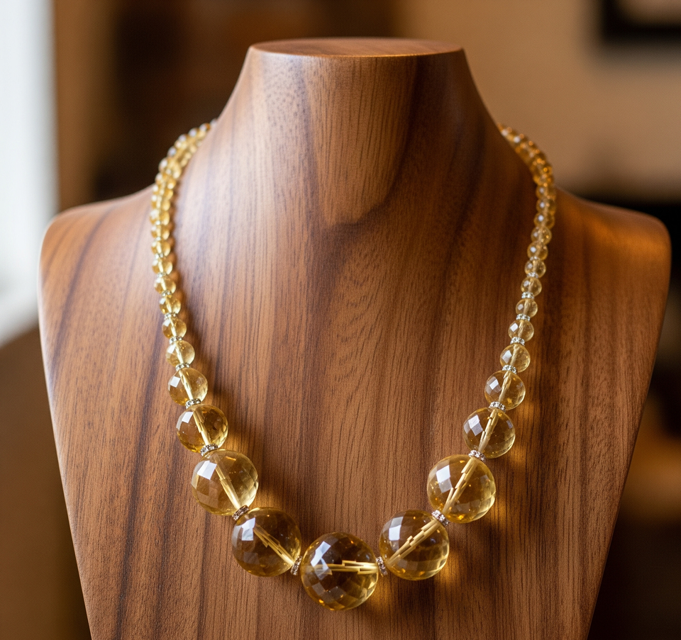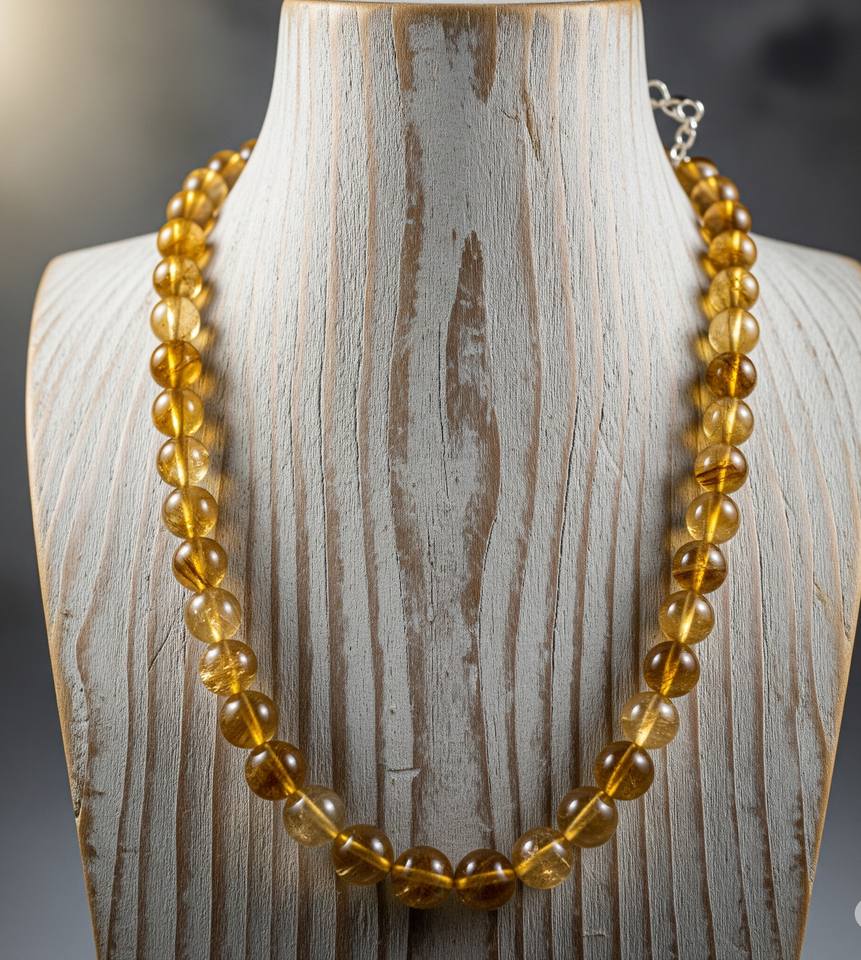Trending 18-Inch Natural Citrine Beaded Necklace for Women Gold 925 Silver Hand Knotted Geometric Design Trendy Fashion