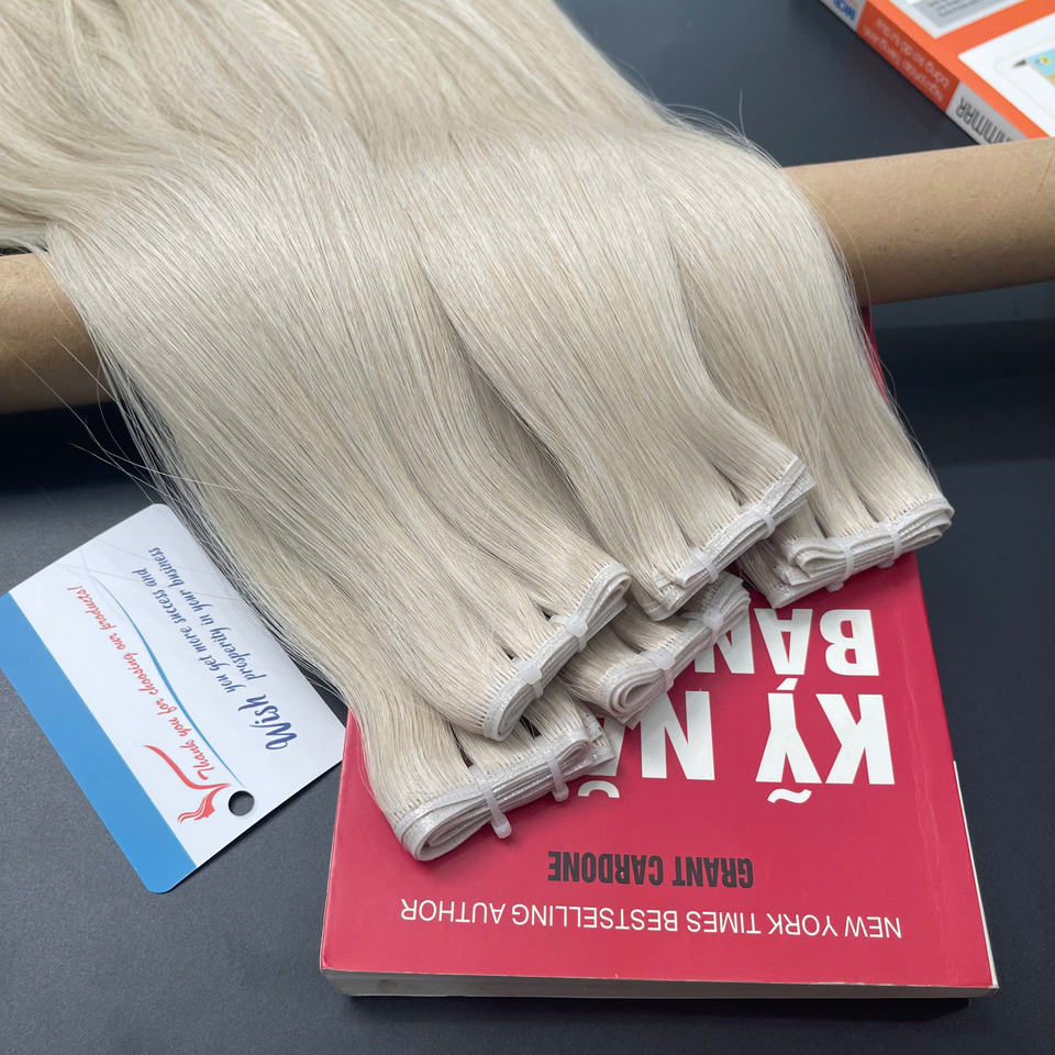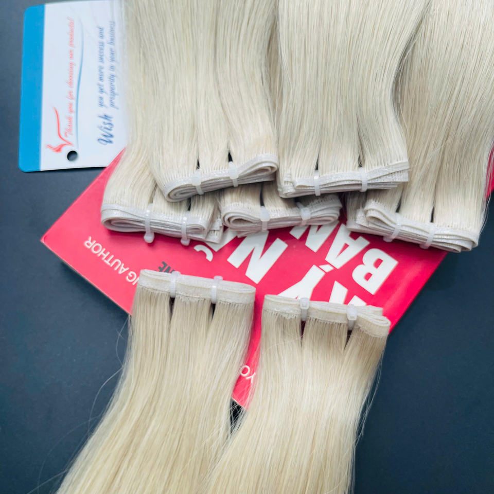 Trending 2024 Product Weft Hair Thin Soft Light Russian Hair Extensions Human Hand Tied Weft Hair Genius Weft