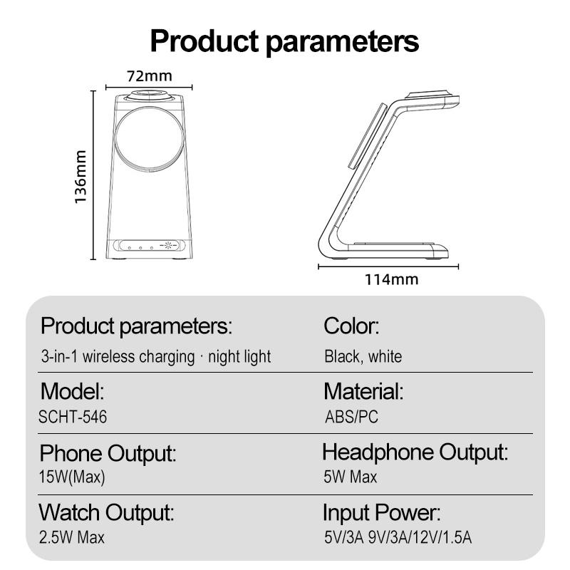 Product name:3 in 1strong magnetic wireless charger stand with Soft nightlights