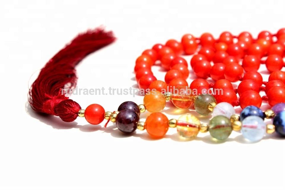 Trending 7 Chakra Gemstone Tassel Spiritual Mala Beads Coral Mala Necklace Healing Pearl Crystal Stone Piedras Naturales Chains
