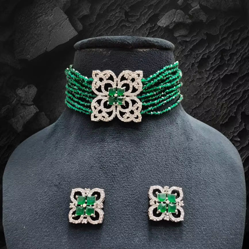 Trending American Diamond Choker Fashion Designer Necklace Set Indian Fashion Jewelry for Women and Girls' Party Wear