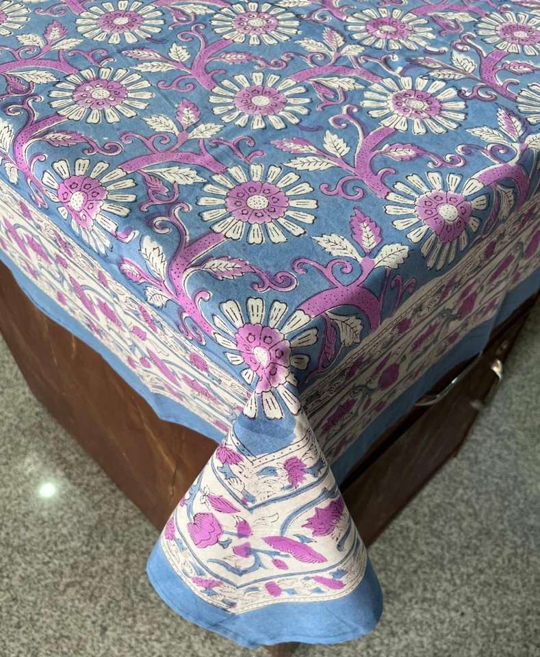 Trending Beautiful Handblock Printed Cotton Tablecloth OEM Table Cover for Home Party or Banquet Floral Printed Bedding Cloths